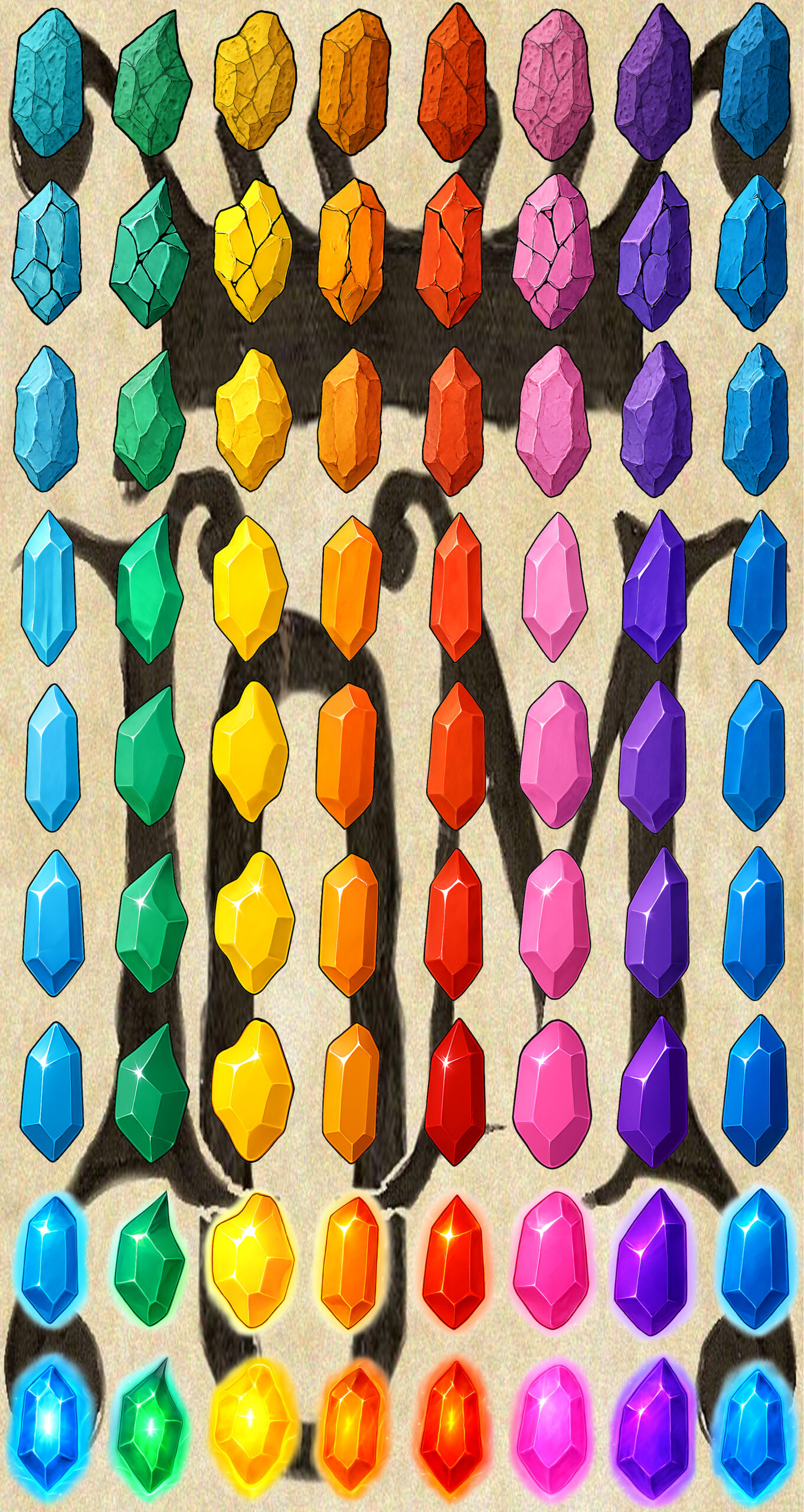 Magic Shards crystallise in a thousand different degrees of purity; the purer, the more valuable they are due to their ability to store and unleash energy. They generally materialise in one of the eight aura colours. But there are also rare cases where a multicoloured one may form, and even rarer amongst the rare are the living ones, with both crystallised and swirling fog at opposite ends and somewhat liquid-like in between. Here is the list of groups: