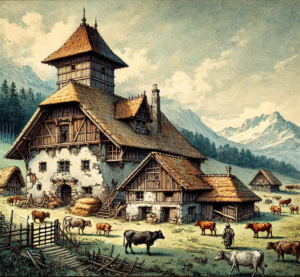 Farmsteads can vary greatly in appearance depending on the region, climate, and available resources. Some may be simple wooden structures with thatched roofs, while others may be more elaborate stone buildings with fortified walls.